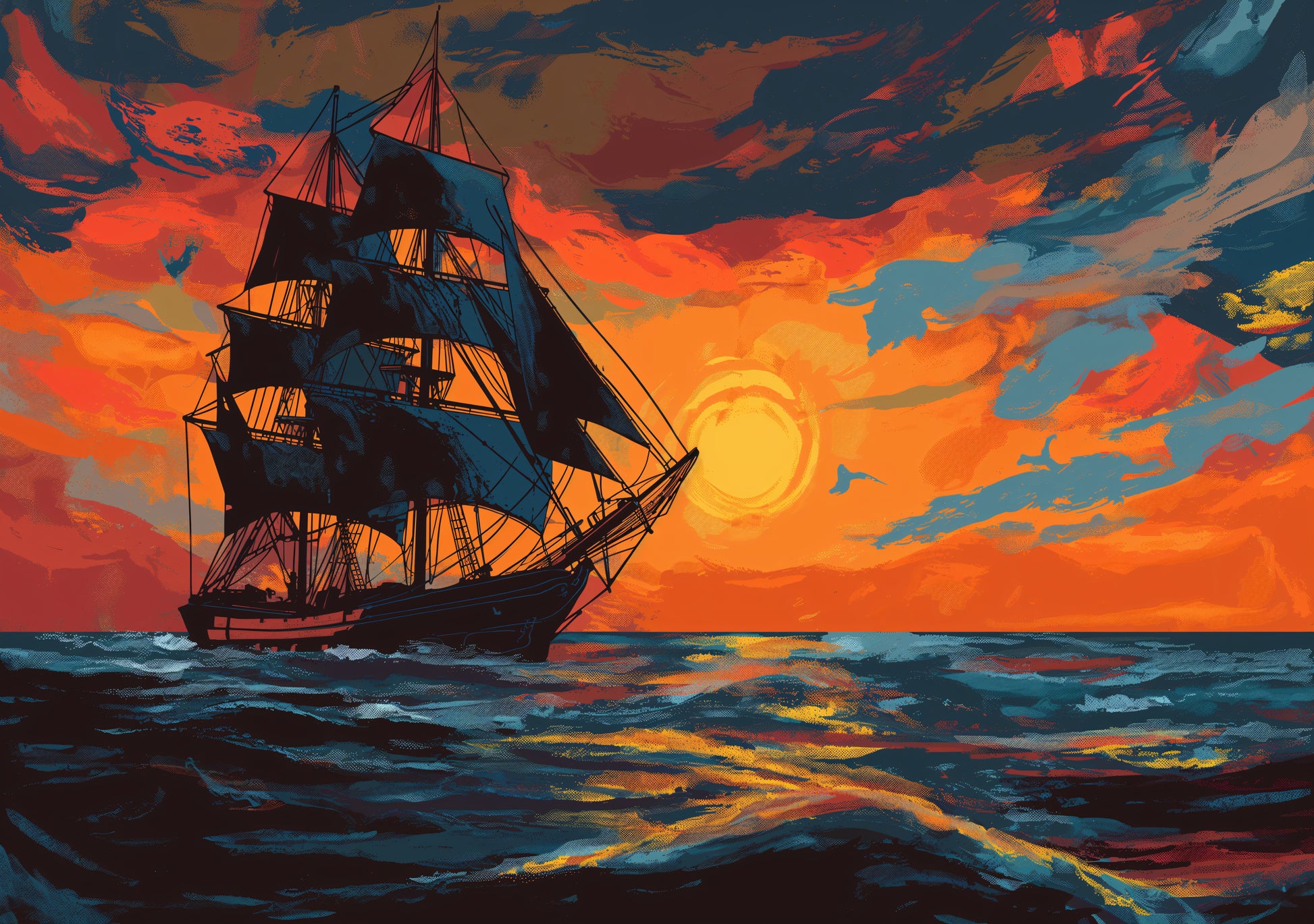 26x38 Wall Art Scenic Sail Boat Textured Fine Art Print